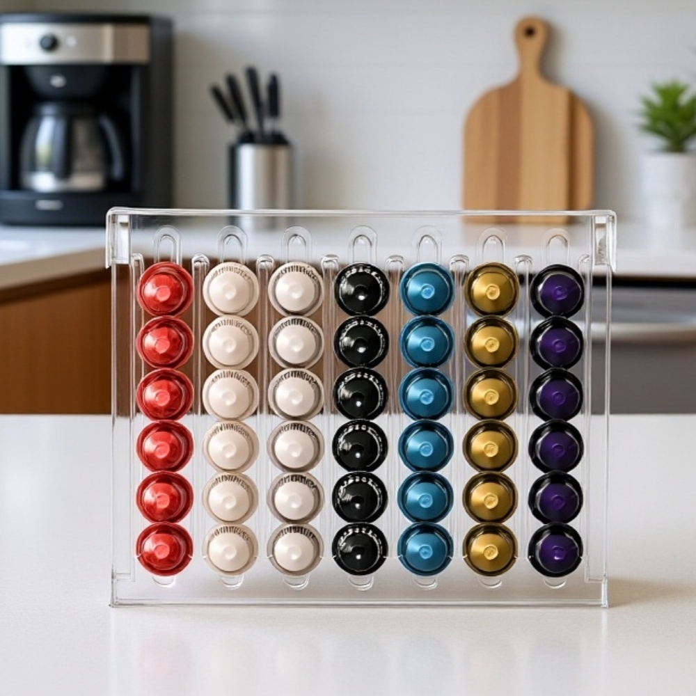 ● Organiza tus cápsulas de café de manera eficiente y elegante, manteniendo tu cocina ordenada y ahorrando espacio.