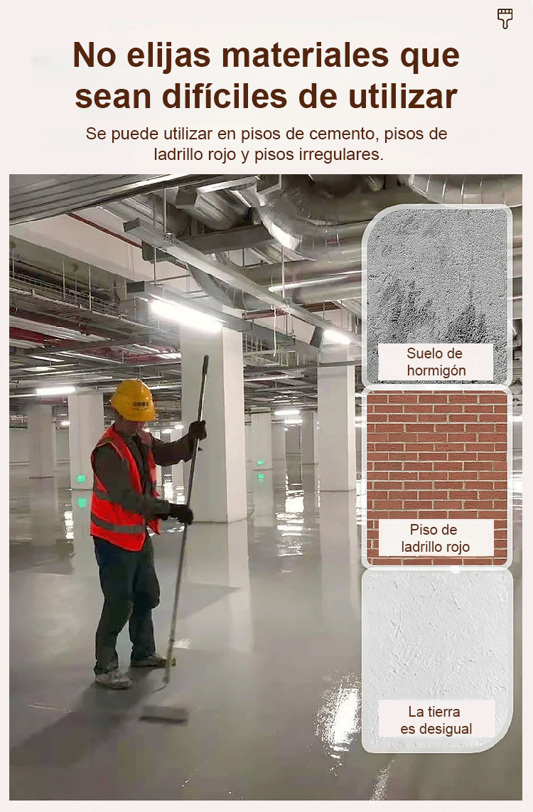 🛡️ Fórmula base agua – no tóxico, sin olor, se puede habitar inmediatamente⚙️ Capa ultra resistente – como nuevo por 10 años🚛 Resistente a presión y golpes – soporta maquinaria pesada💧 Impermeable, anti aceite y químicos – limpia con un paño🧹 Superficie lisa sin juntas – no acumula polvo🎨 Efecto dorado mate – eleva el estilo de cualquier espacio🏭 Sin herramientas profesionales – resultados de experto en DIY